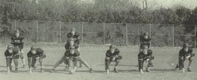 The Netcong High School Indians lined up in 1950. John Giannantonio takes a set position behind his linemen in this photo of the legendary Netcong High School football team of 1950. Giannantonio, at right, set high school records that may never be broken when he rushed for 754 yards in one game and averaged 594.5 rushing yards per game for the season. Currently, Netcong, Stanhope & Byram send their students to Lenape Valley Regional High School, the old Netcong High School building is now used as Netcong Elementary School. |