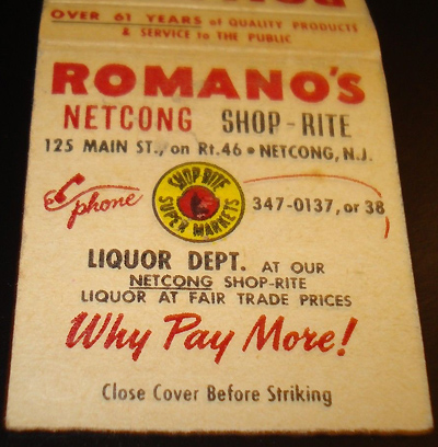 Shop-Rite SuperMarket co-op. This matchbook cover proclaims "over 61